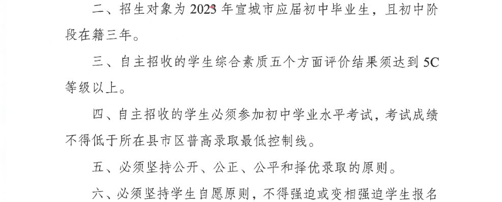 原文标题:0530教基函〔2023〕20号关于宣城中学2023年自主招生工作的批复