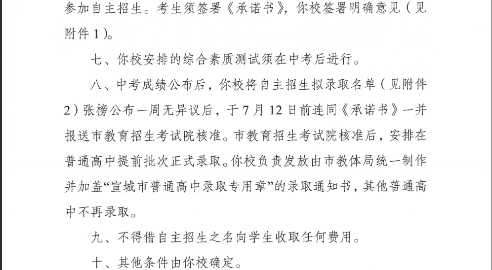 关于安徽宣城中学2023年自主招生工作的批复06-09