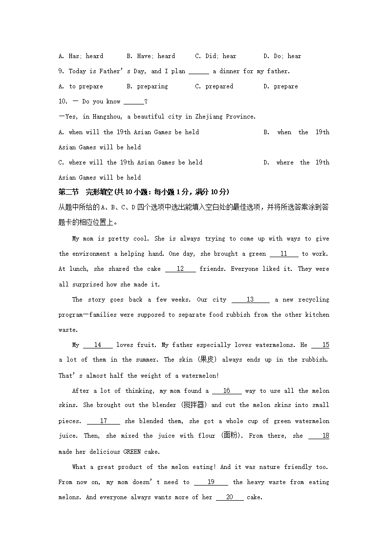 2023年云南玉溪中考英语试题及答案(Word版)06-20