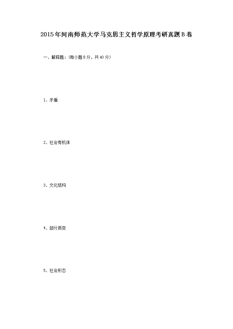 【文档预览】 文档大全网整理发布2015年河南师范大学马克思主义哲学原理考研真题B卷(Word版),前五页预览如下:
