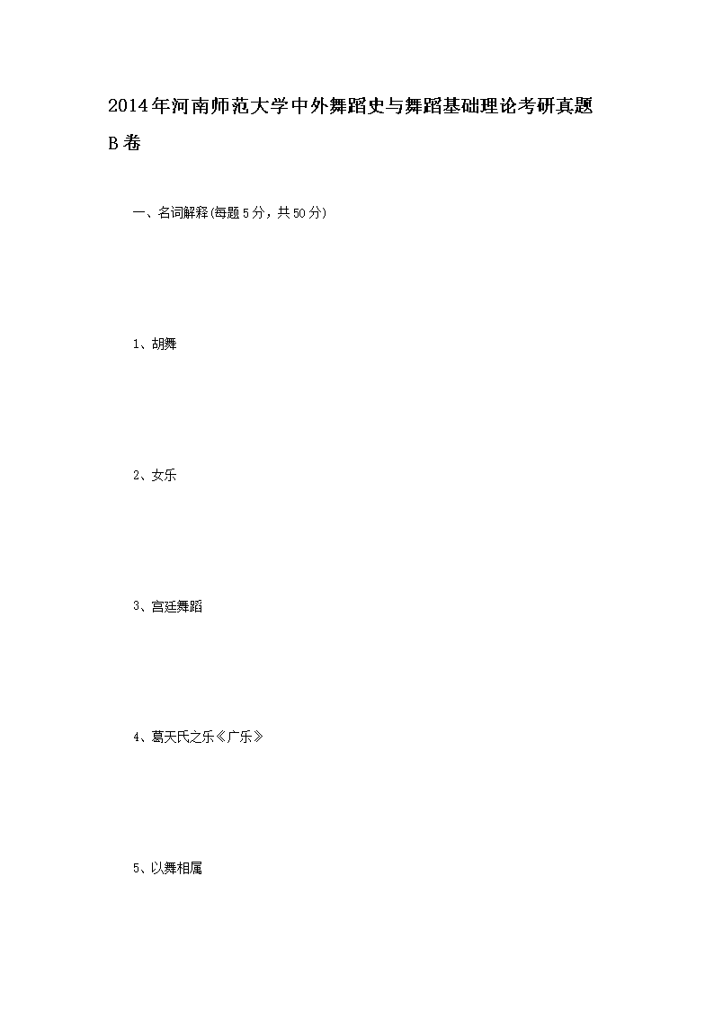 2014年河南师范大学中外舞蹈史与舞蹈基础理论考研真题B卷(Word版)06-09