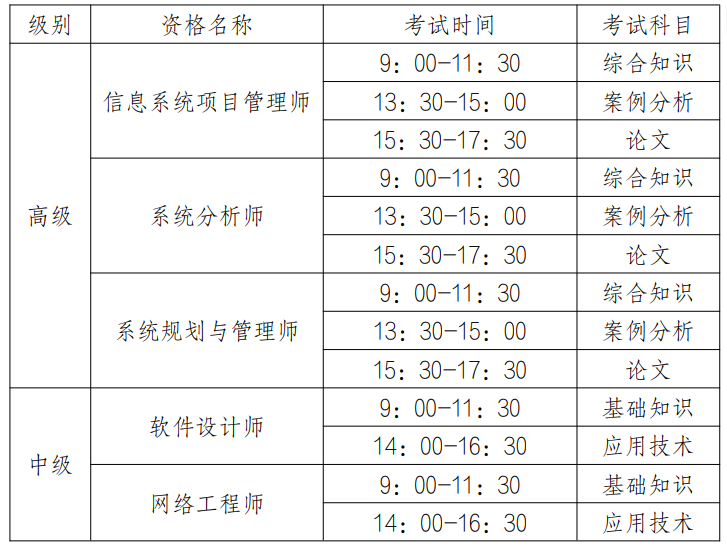 六、考试用书:有关考试大纲及考试教材修订出版信息在“中国计算机技术职业资格网”上发布。