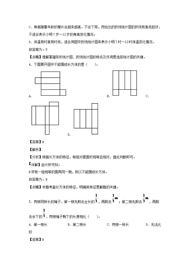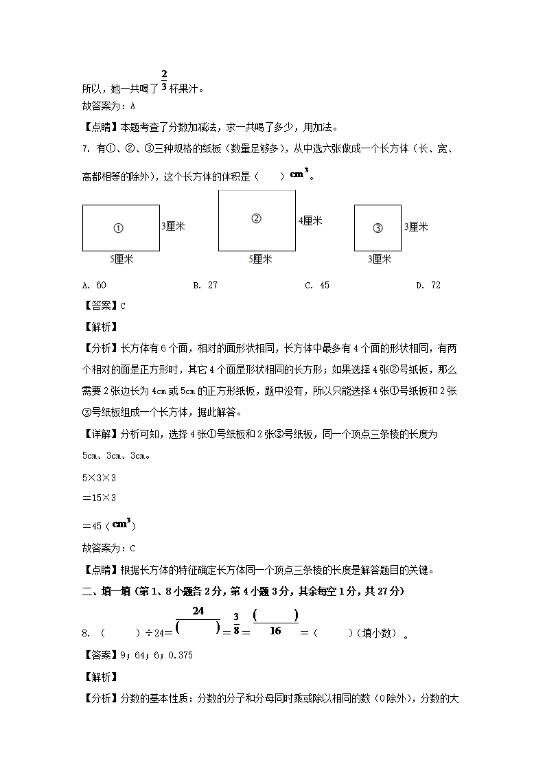 2021-2022学年浙江温州永嘉县五年级下册数学期末试卷及答案(Word版)09-26