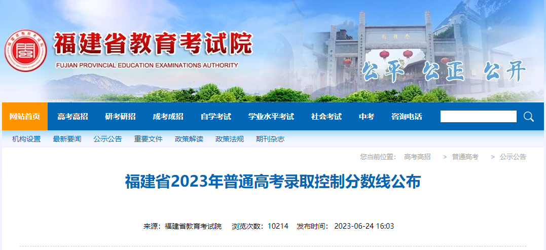 2023年福建普通高考录取控制分数线公布06-26