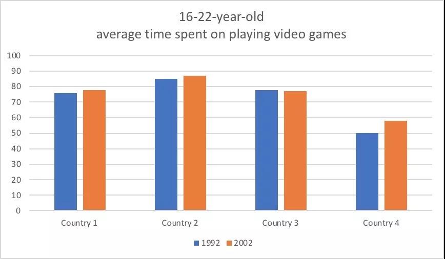 写作要点:本题写作一定要注意到动态图的特征,第一:每一项的趋势描写是必须的,即使是柱图也要使用折线图的写作方式,本题的比较点在每个国家内部1992年和2002年时间的变化,并添加适当的形容词、副词进行修饰,使用不同词性的表达方式进行句型替换(例如increase作名词、动词的不通句型用法);第二:同一年每个国家之间需要按照静态图方法写作,描写极值等不能使用趋势变化。语法方面时态是考察重点,本题可用到一般过去时、过去完成时等时态。在内容方面,要注意到数据的添加,柱图可以先标注一下每一项的数据,以免出现遗漏。
