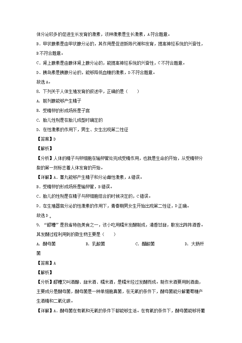 2023年甘肃天水中考生物试题及答案(Word版)08-10