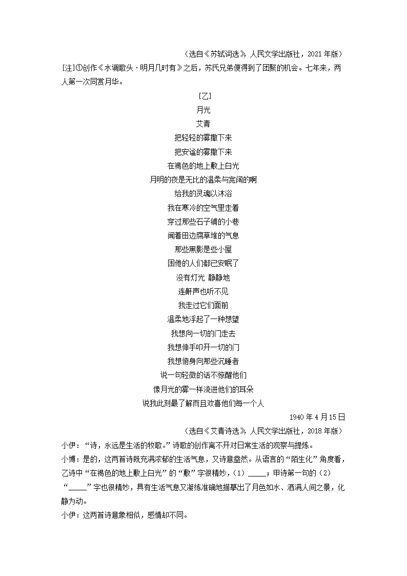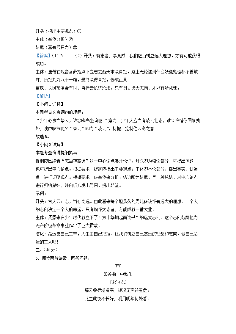 2021-2022学年九年级上学期江苏省南京市建邺区语文期中考试题及答案(Word版)09-07