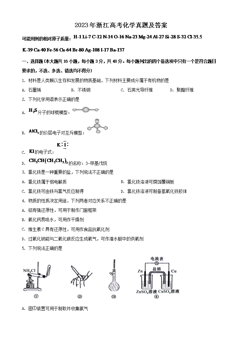 2023年浙江高考化学真题及答案(Word版)06-26