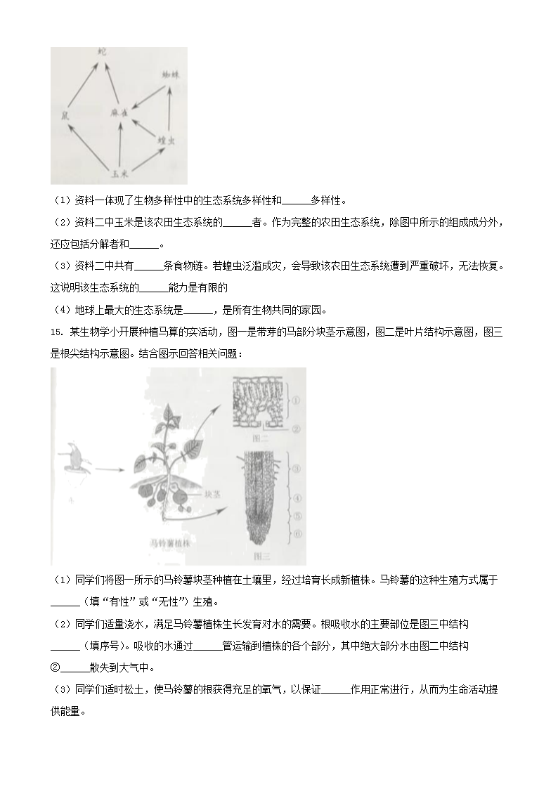 2023年辽宁营口中考生物真题及答案(Word版)07-11
