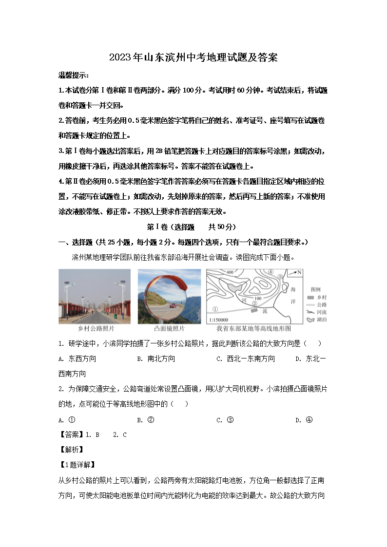 2023年山东滨州中考地理试题及答案(Word版)06-26