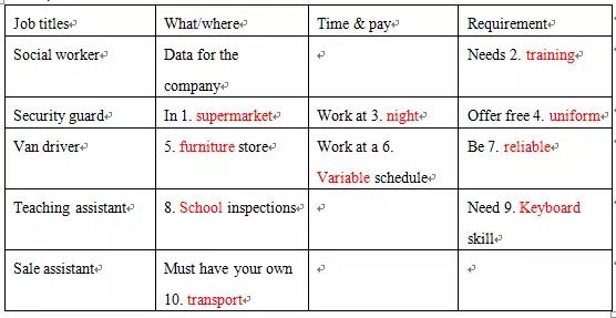 解析: 常见的兼职场景,只是有部分词汇如variable拼写可能会有考生不熟悉,定位需要通过横纵轴综合定位。