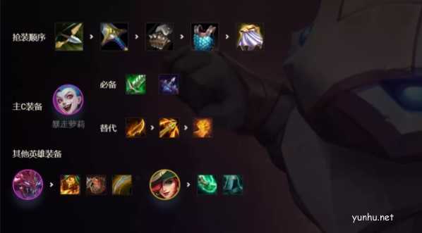 暴走萝莉正常的3件装备,小编觉得汲取剑是必备,这个装备除了恢复效果外,小编更加看重的是她低于40%生命值提供的30%的护盾加持,这对于主C来说能够防止暴毙。