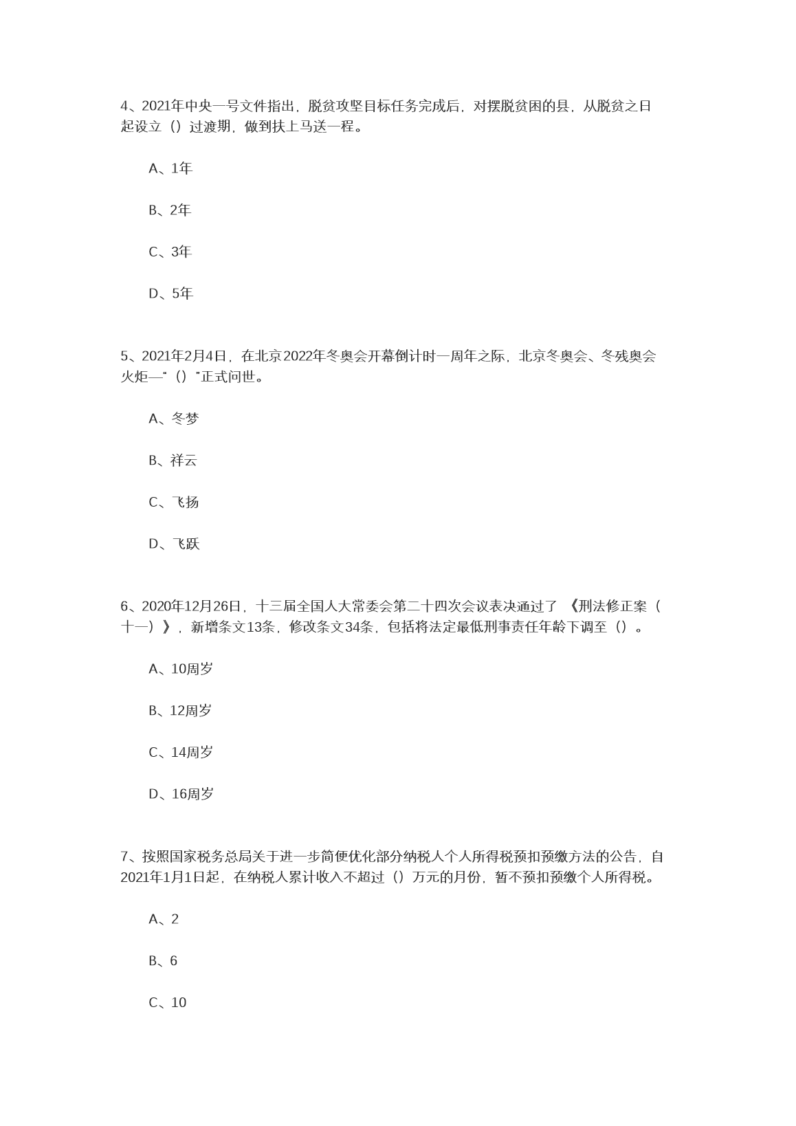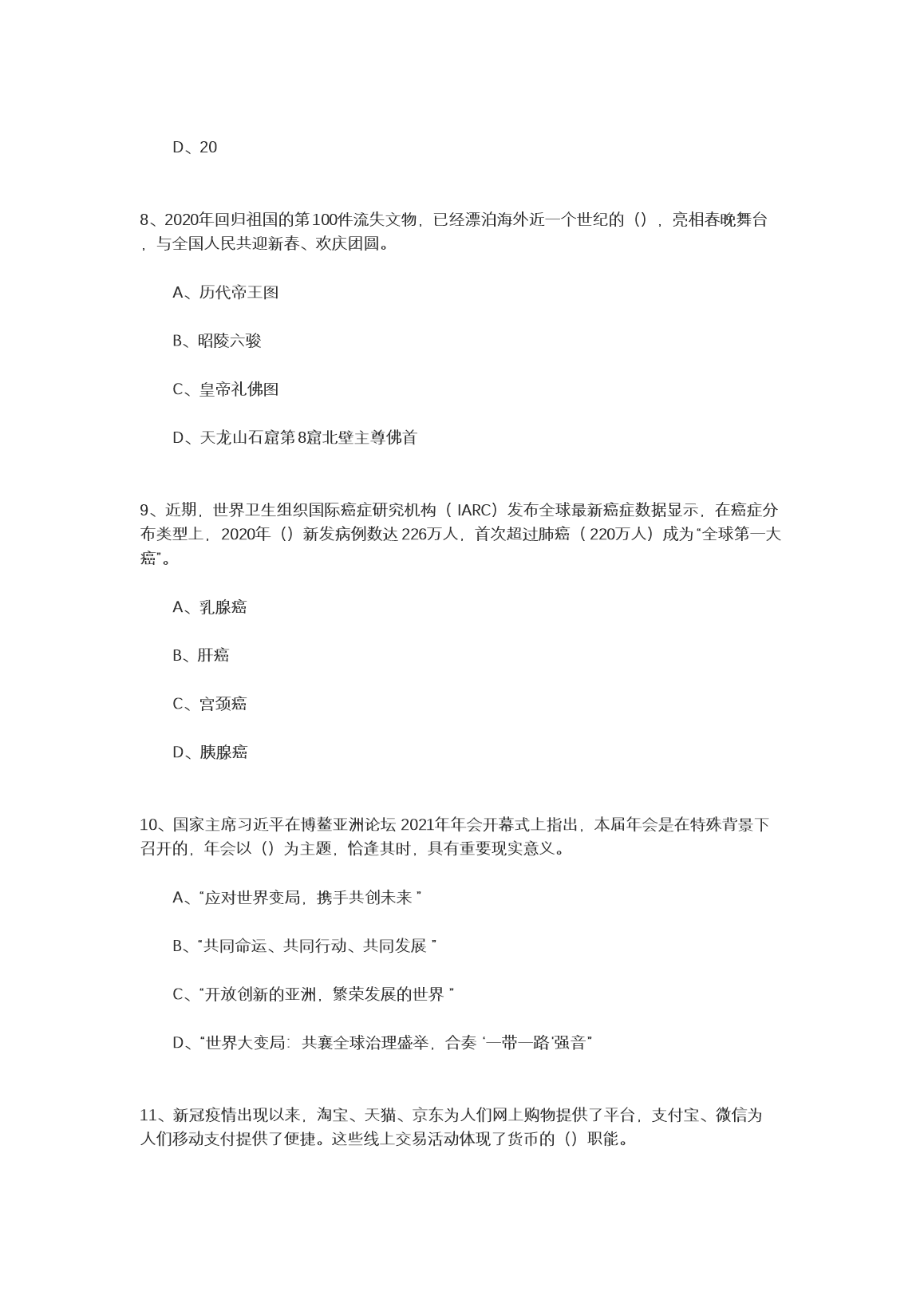2021年河北省石家庄市直事业单位公共基础知识模拟题(Word版)10-17