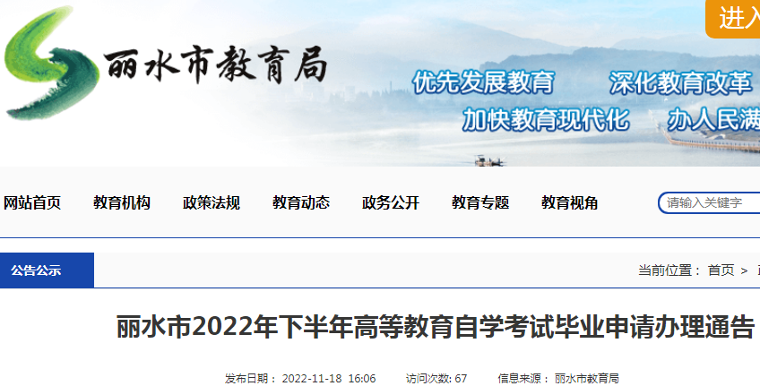 原文标题:丽水市2022年下半年高等教育自学考试毕业申请办理通告