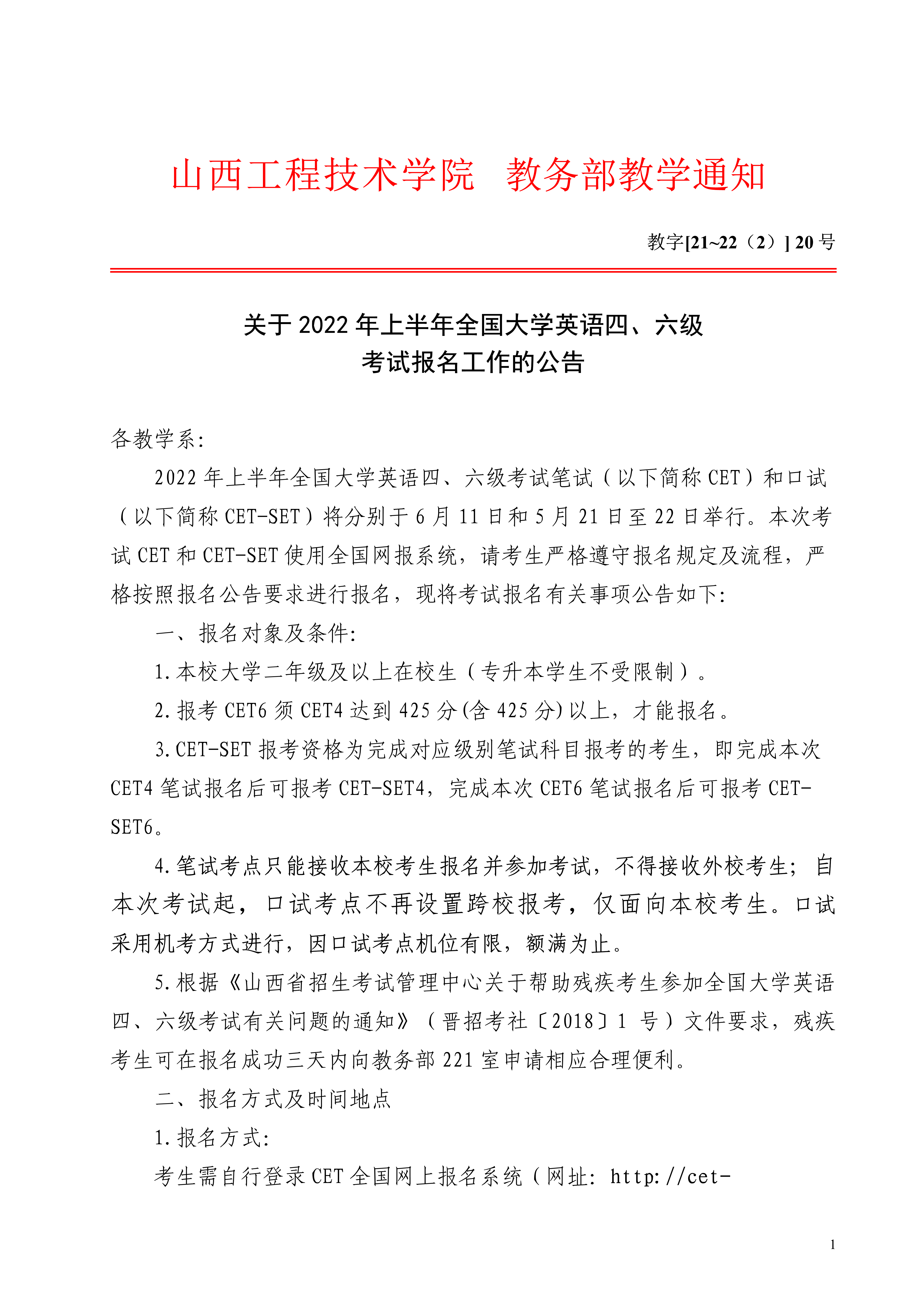 2022年上半年山西工程技术学院英语四、六级考试报名工作的公告08-27