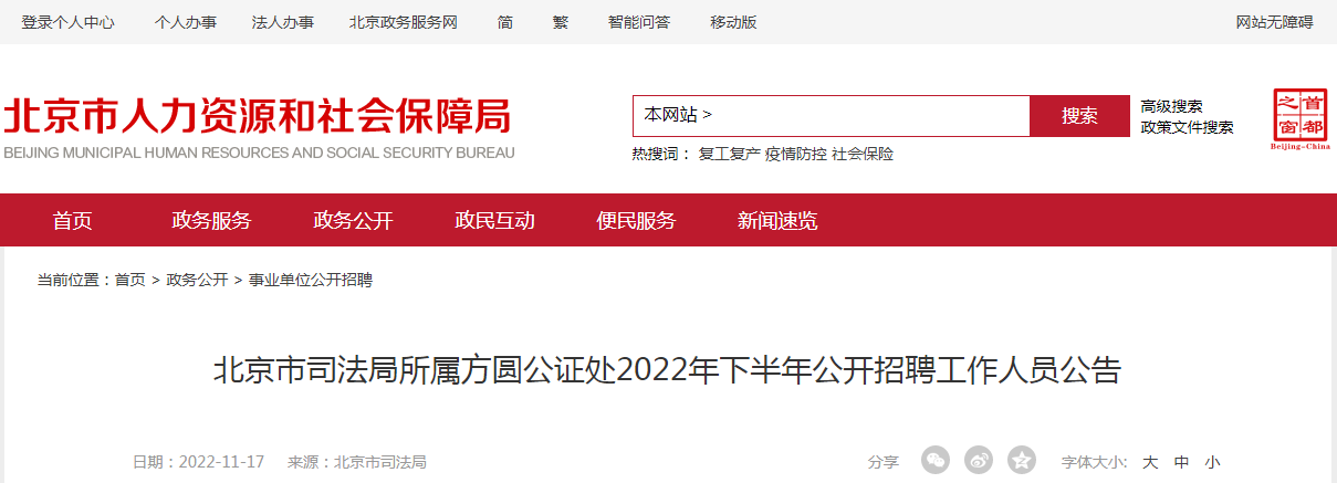 2022年下半年北京市司法局所属方圆公证处工作人员公开招聘公告11-18
