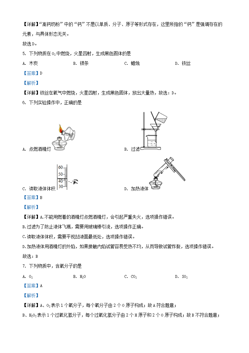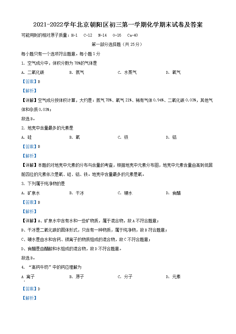 2021-2022学年北京朝阳区初三第一学期化学期末试卷及答案(Word版)07-13