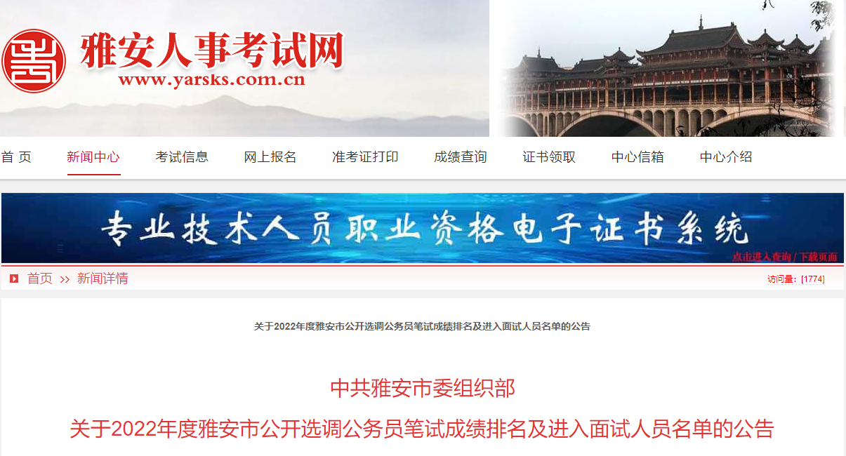 原文标题:关于2022年度雅安市公开选调公务员笔试成绩排名及进入面试人员名单的公告
