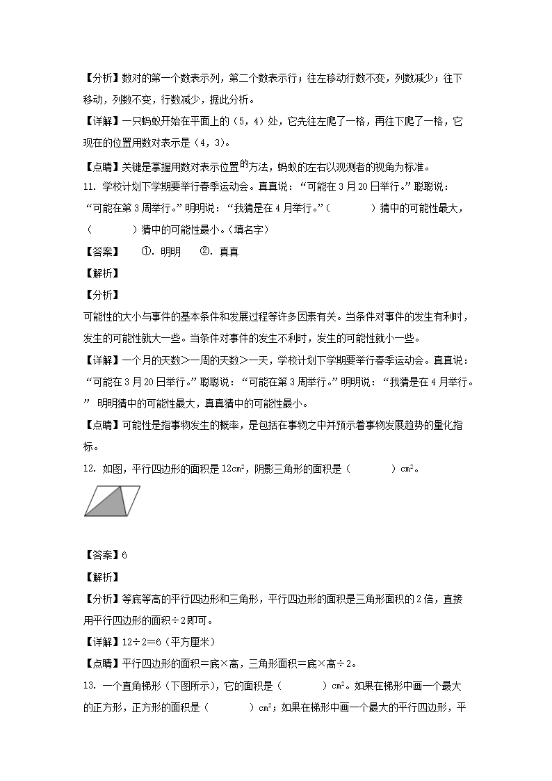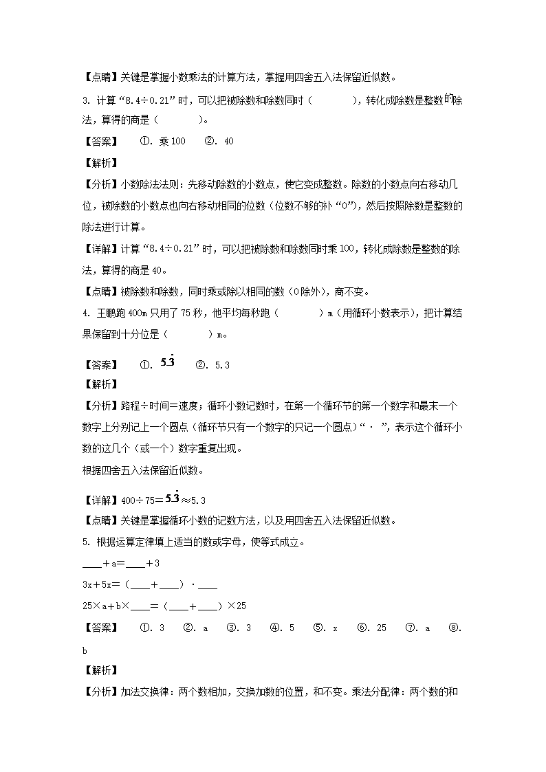 2021-2022学年重庆南岸区五年级上册数学期末试卷及答案(Word版)09-12
