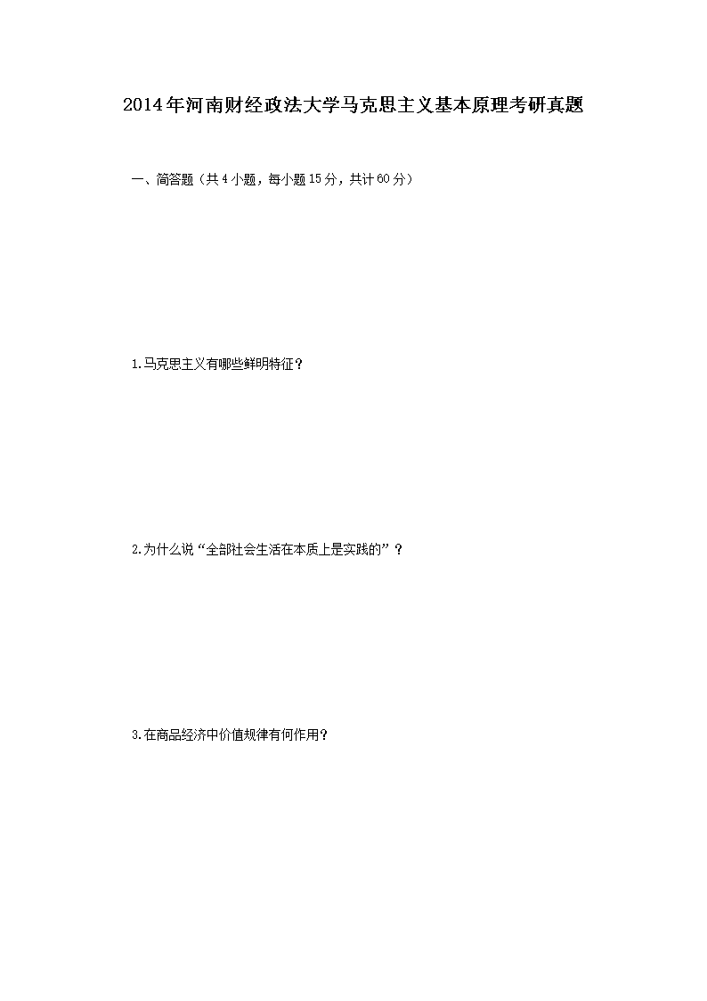 2014年河南财经政法大学马克思主义基本原理考研真题(Word版)06-20