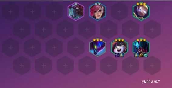虚空恐惧-科加斯(4)、皮城执法官-蔚(3)、蒸汽机器人-布里茨(2)、虚空掠夺者-卡兹克(1)、仙灵女巫-露露(2)、虚空遁地兽-雷克塞