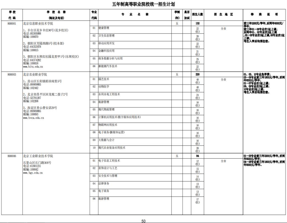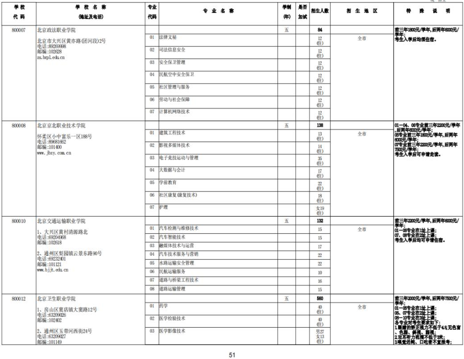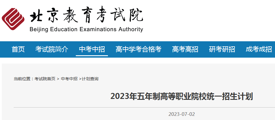 北京2023年五年制高等职业院校统一招生计划07-04
