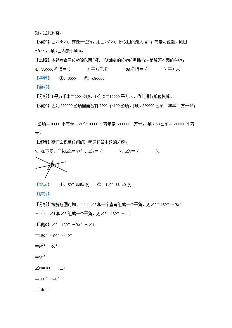 2022-2023学年湖南省株洲市炎陵县四年级上学期期末数学真题及答案(Word版)10-18