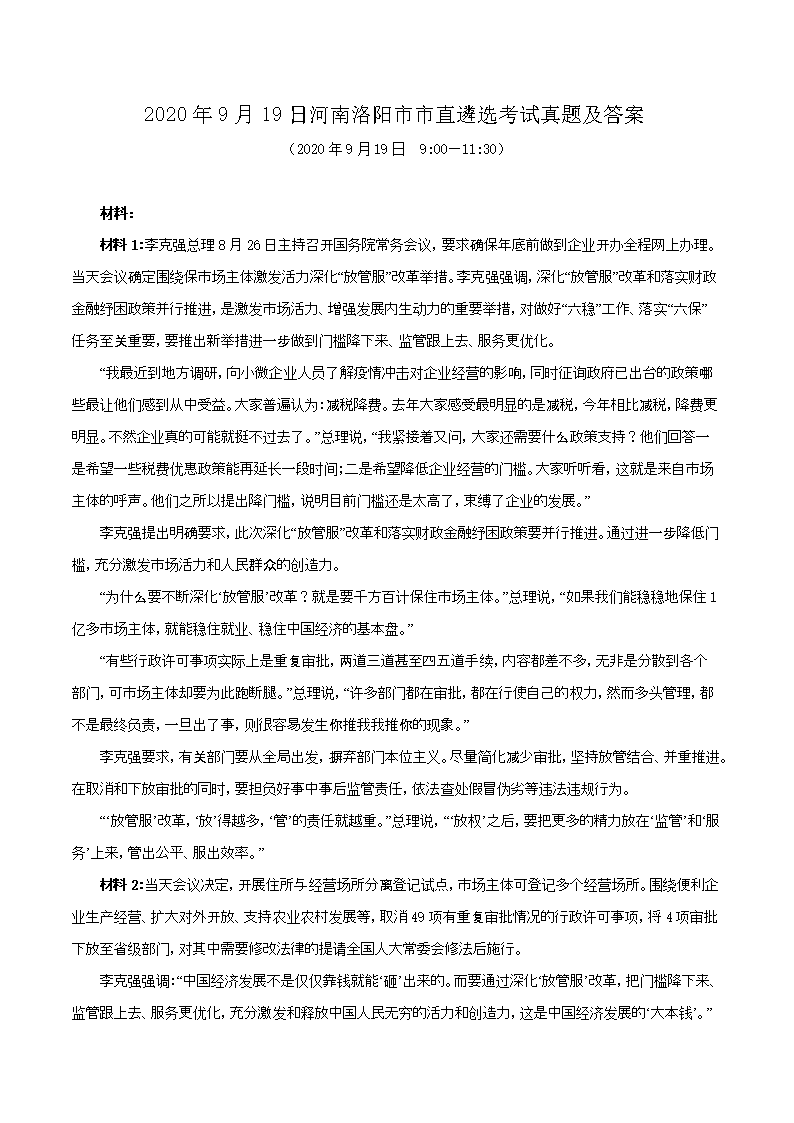 2020年9月19日河南洛阳市市直遴选考试真题及答案(Word版)08-01