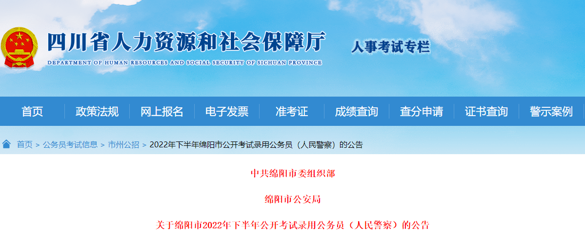 2022下半年四川绵阳市考试录用公务员(人民警察)的公告10-27