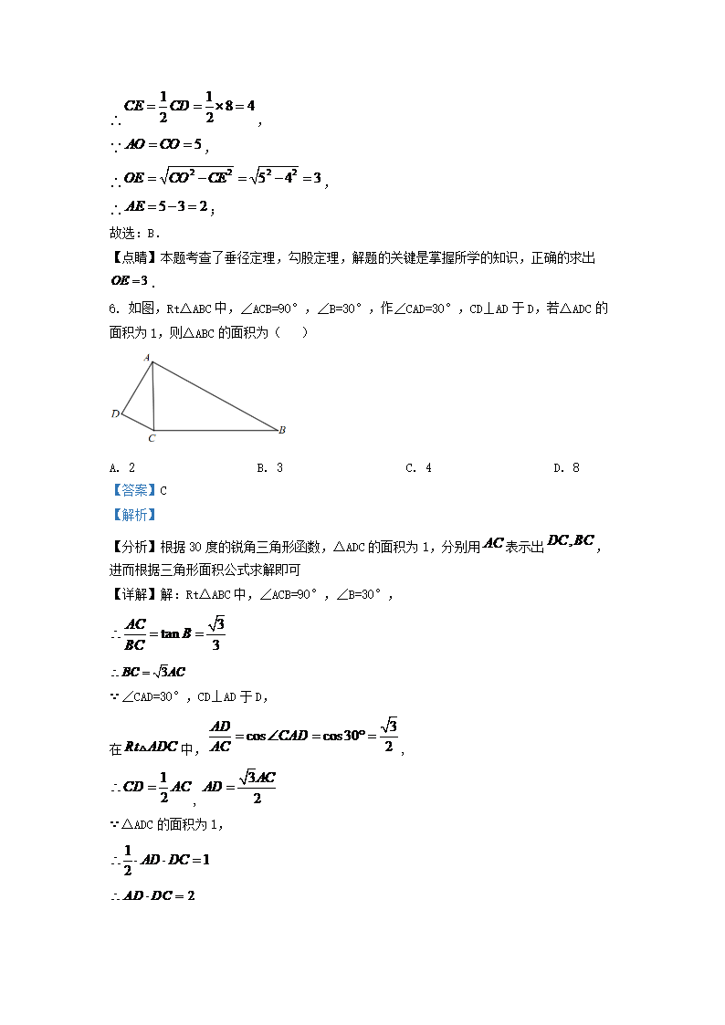 2021-2022学年北京平谷区初三第一学期数学期末试卷及答案(Word版)07-04