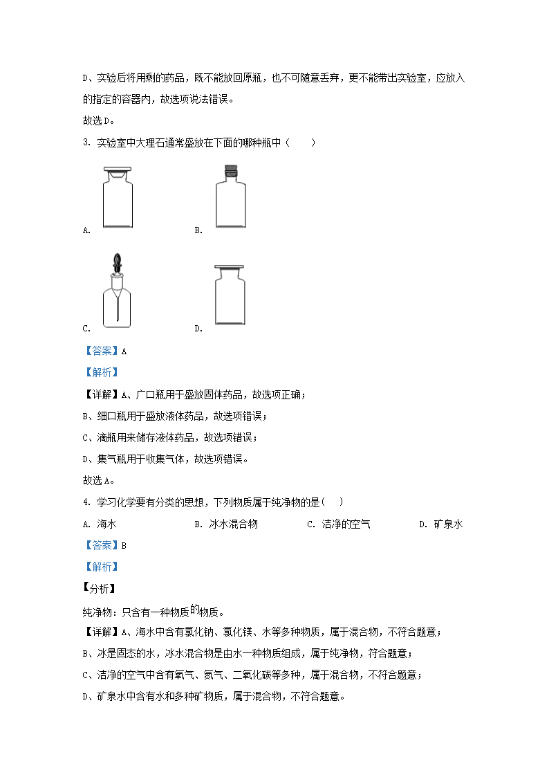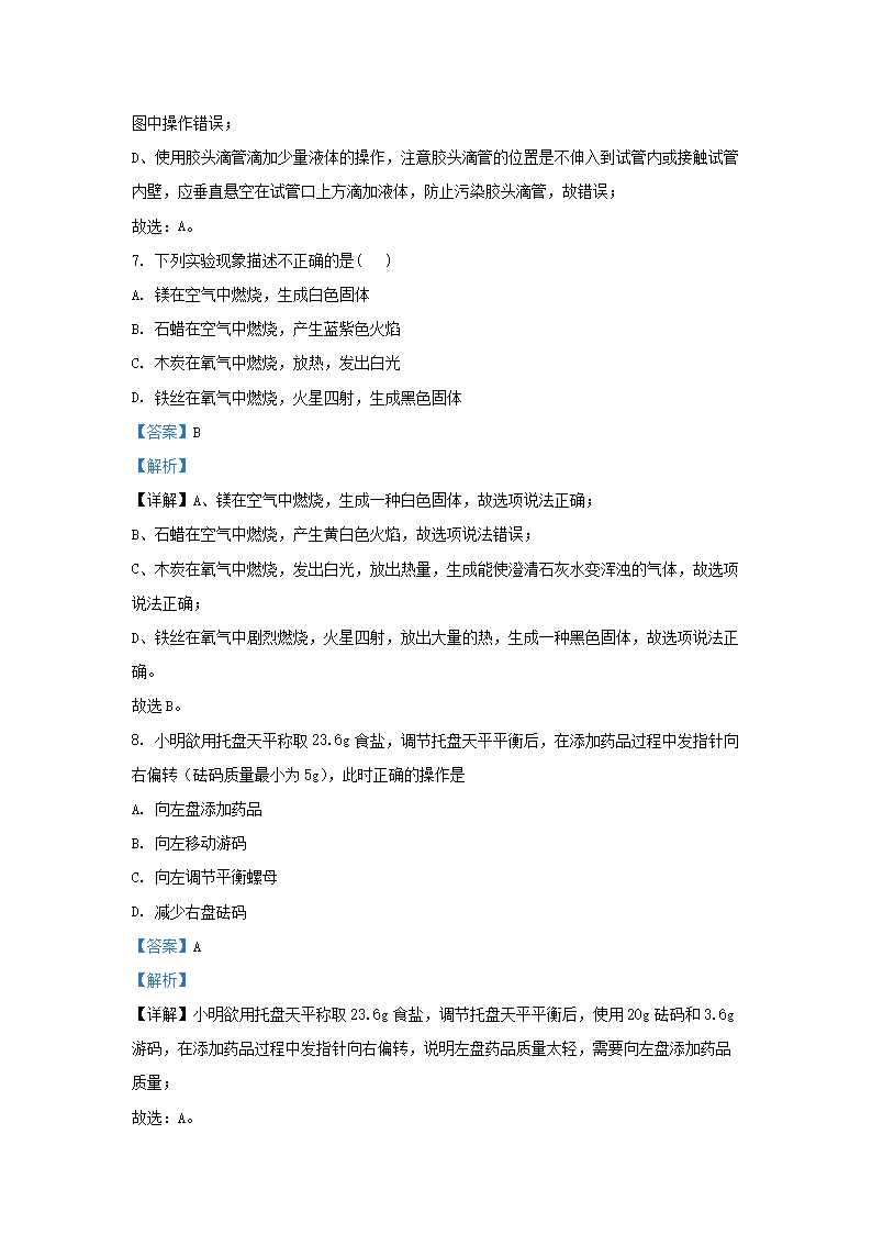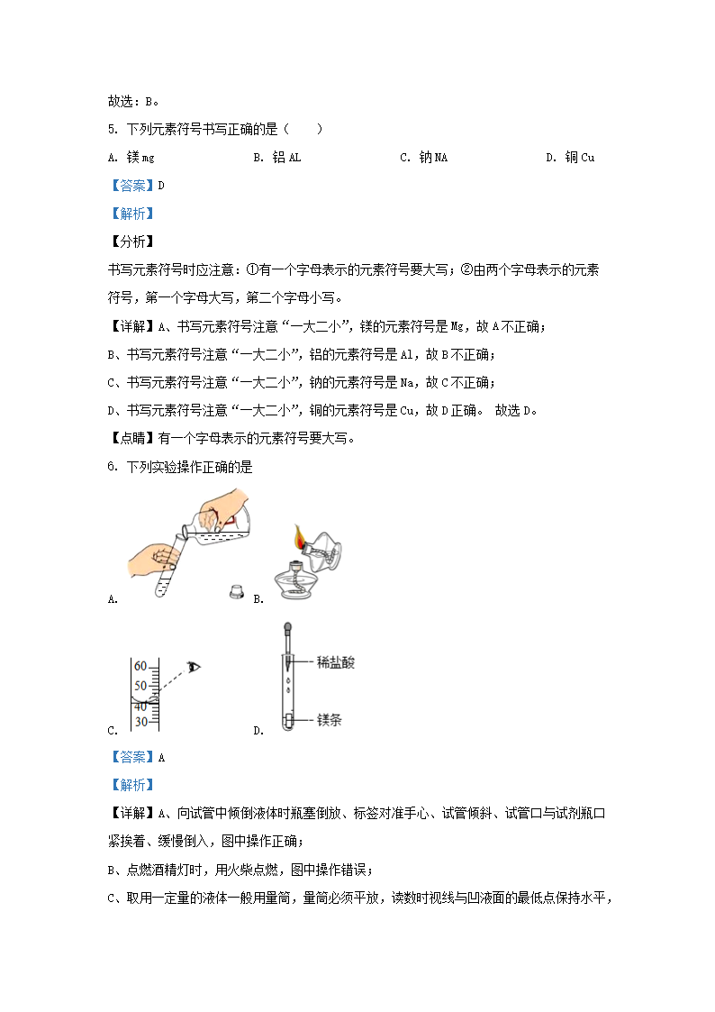 2020-2021学年上海市松江区九年级上学期化学十二月月考试题及答案(Word版)10-20