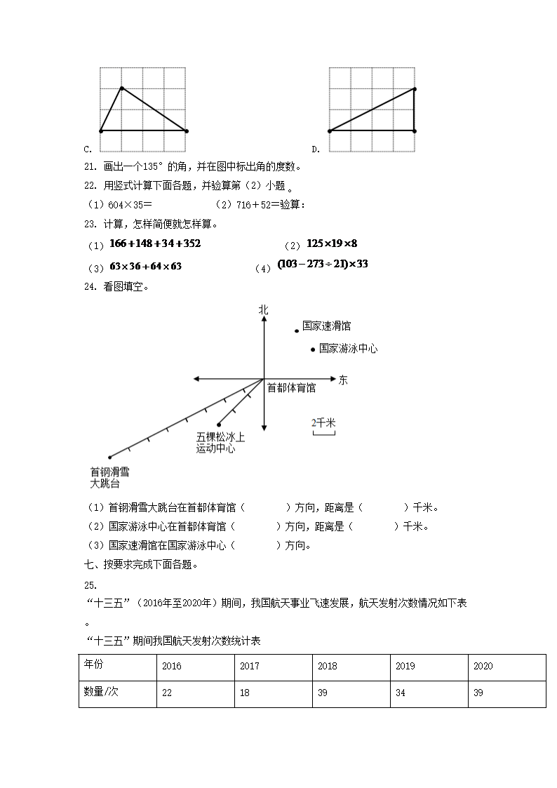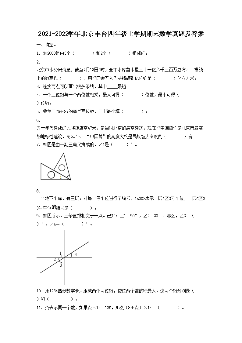 2021-2022学年北京丰台四年级上学期期末数学真题及答案(Word版)06-21
