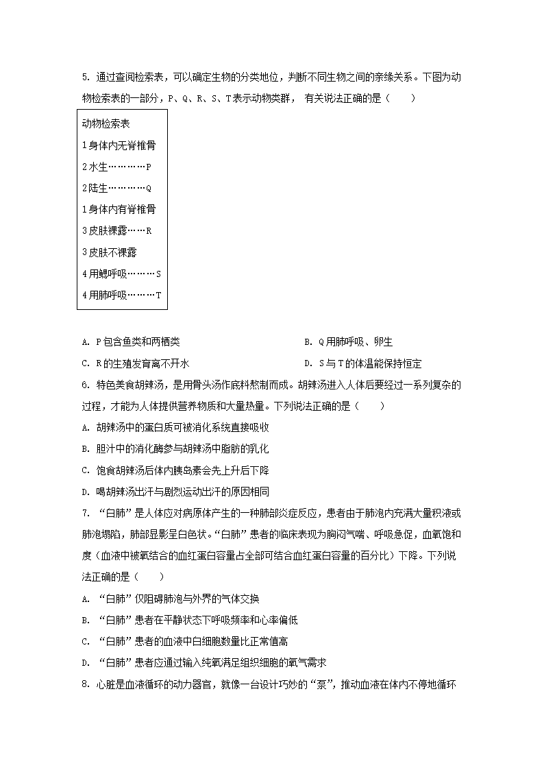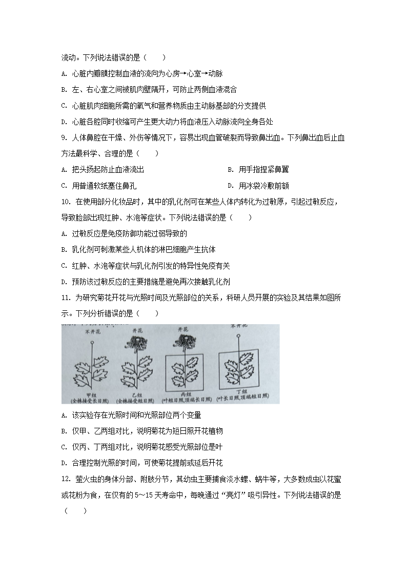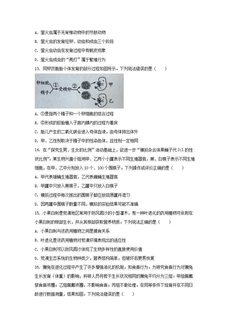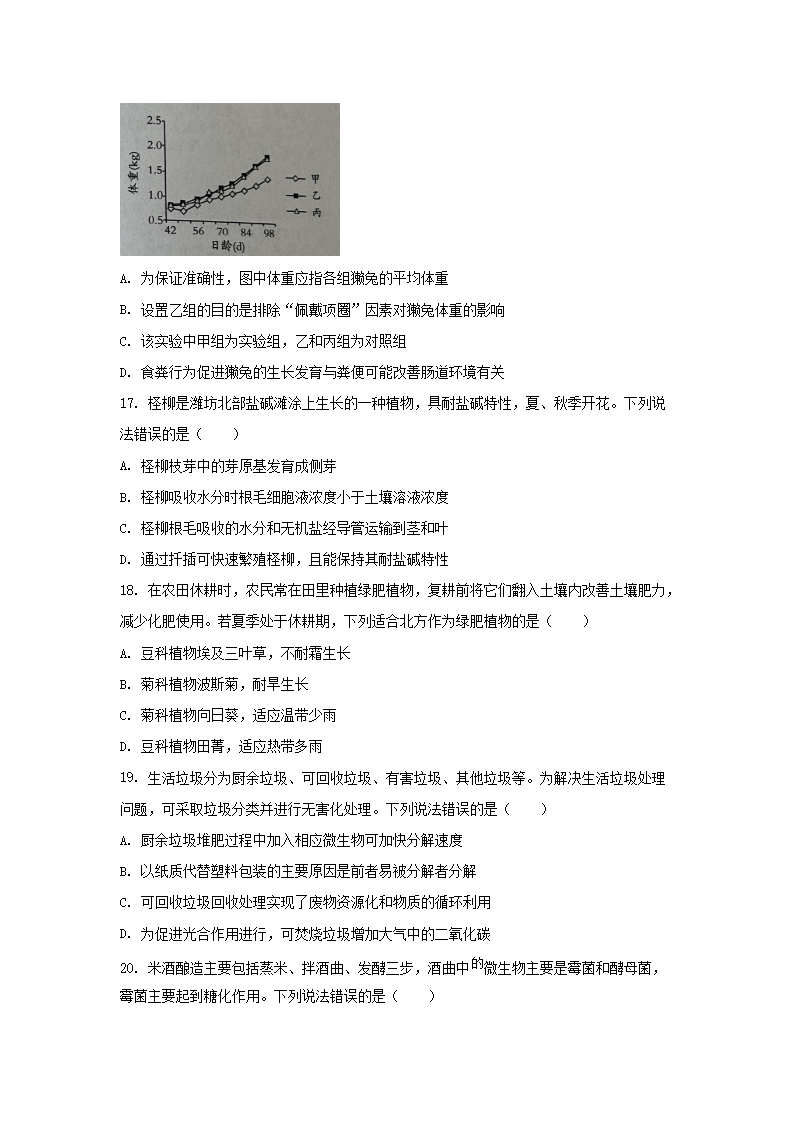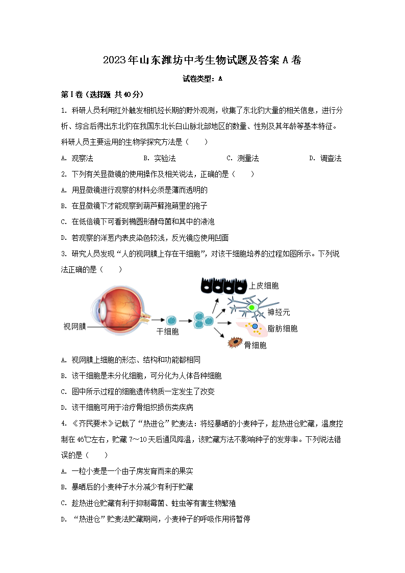 2023年山东潍坊中考生物试题及答案A卷(Word版)08-23