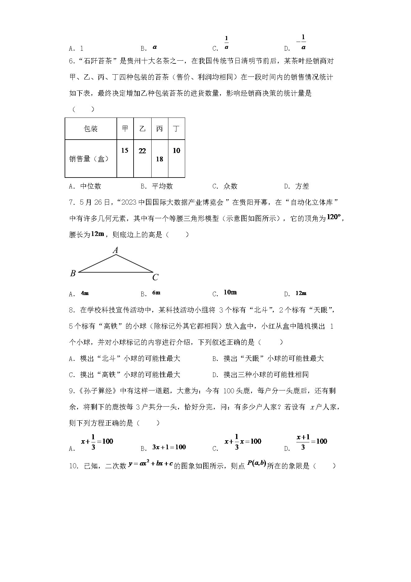 2023年贵州黔东南中考数学真题及答案(Word版)07-18
