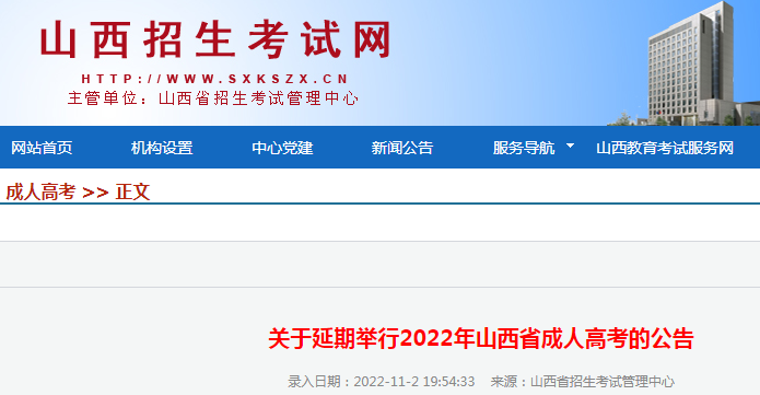 原文标题:关于延期举行2022年山西省成人高考的公告