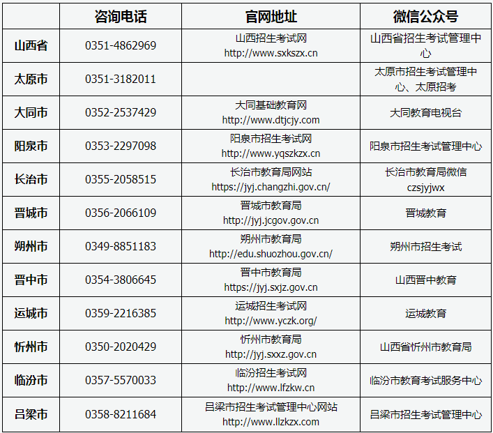 附件:省、市教育考试招生机构咨询电话、网址及微信公众号