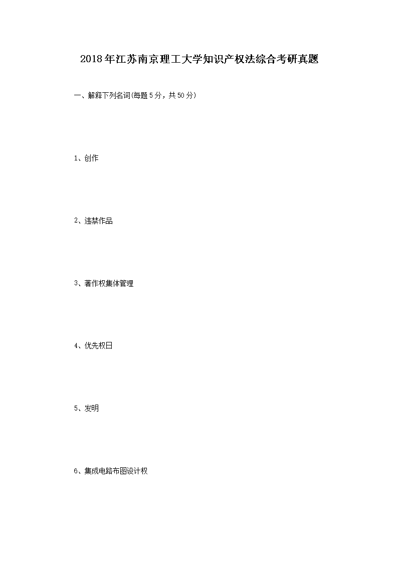 2018年江苏南京理工大学知识产权法综合考研真题(Word版)06-26