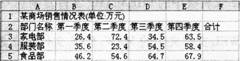 28、(1)打开工作簿文件EXCEL.xlsx,将工作表sheet1的Al:Fl单元格合并为一个单元格,内容水平居中,计算“合计”列的内容,将工作表命名为“商场销售情况表”.