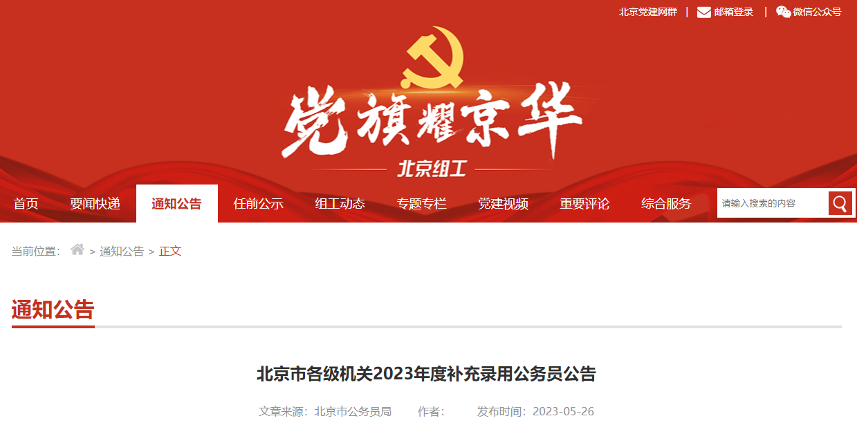原文标题:北京市各级机关2023年度补充录用公务员公告