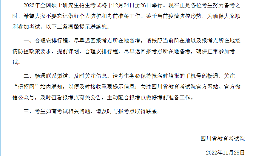 原文标题:@全体2023年研考生,考前温馨提示(一)请收好!