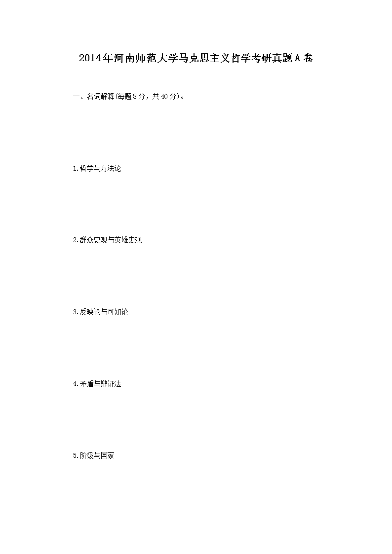 2014年河南师范大学马克思主义哲学考研真题A卷(Word版)06-06