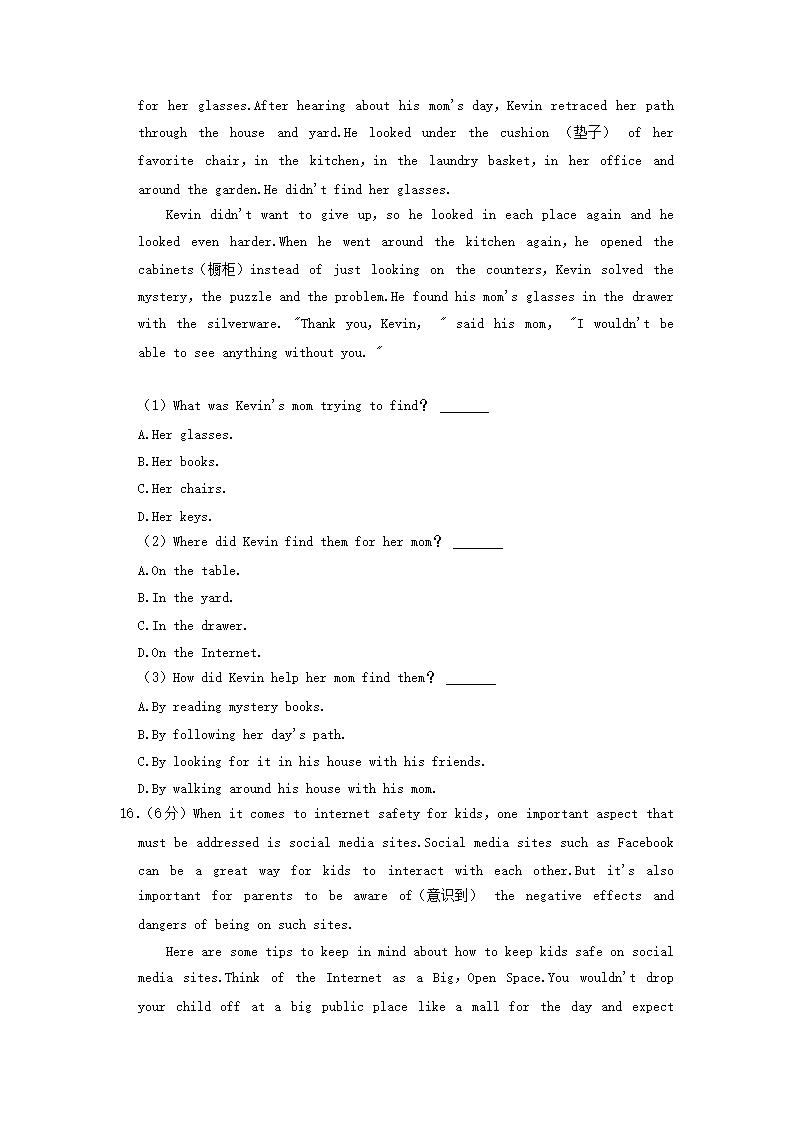 2022-2023学年北京平谷区初三第一学期英语期末试卷及答案(Word版)08-17