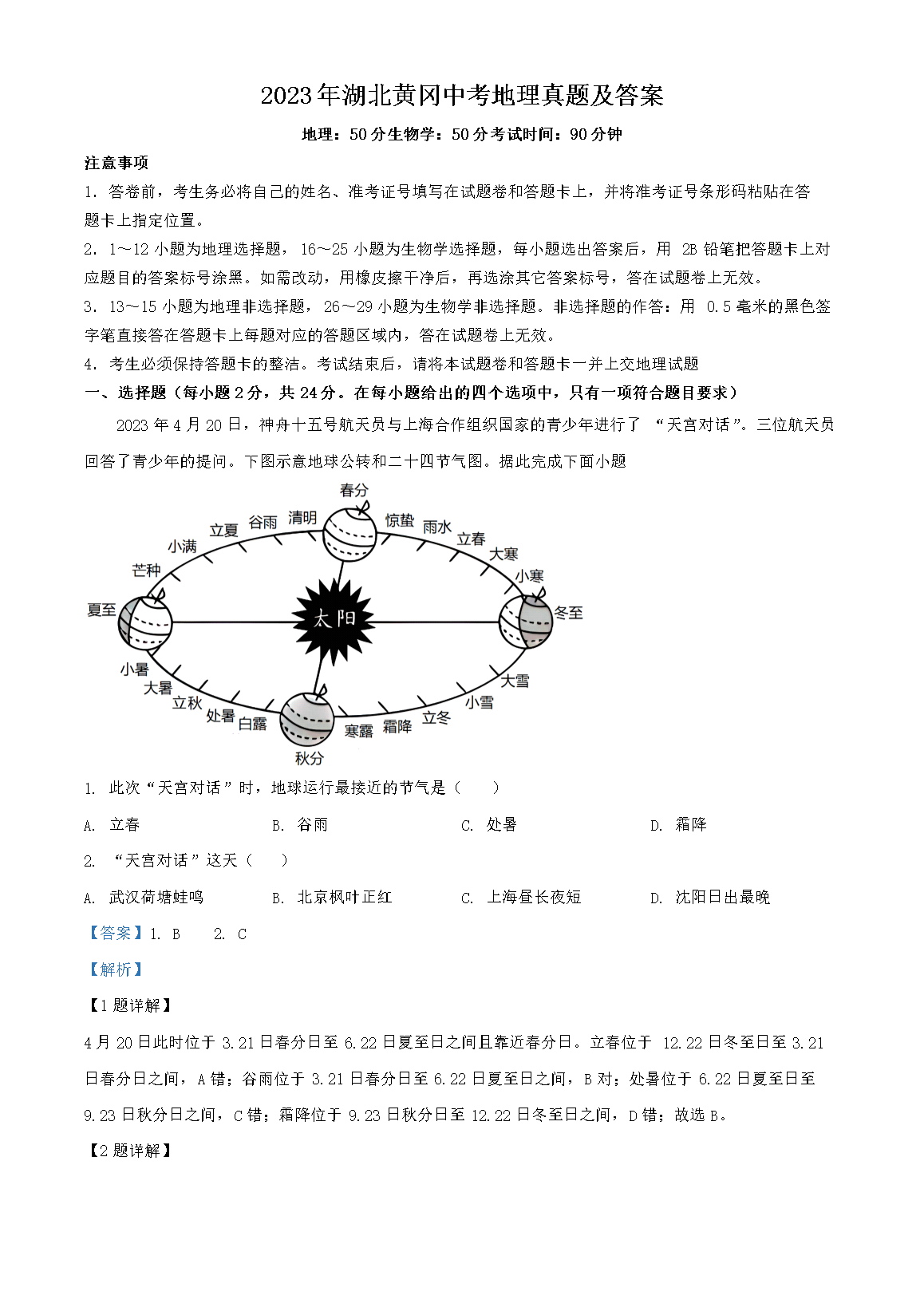 【文档预览】 文档大全网整理发布2023年湖北黄冈中考地理真题及答案(Word版),前五页预览如下: