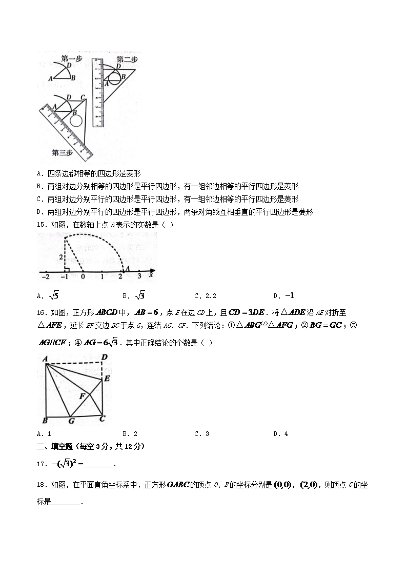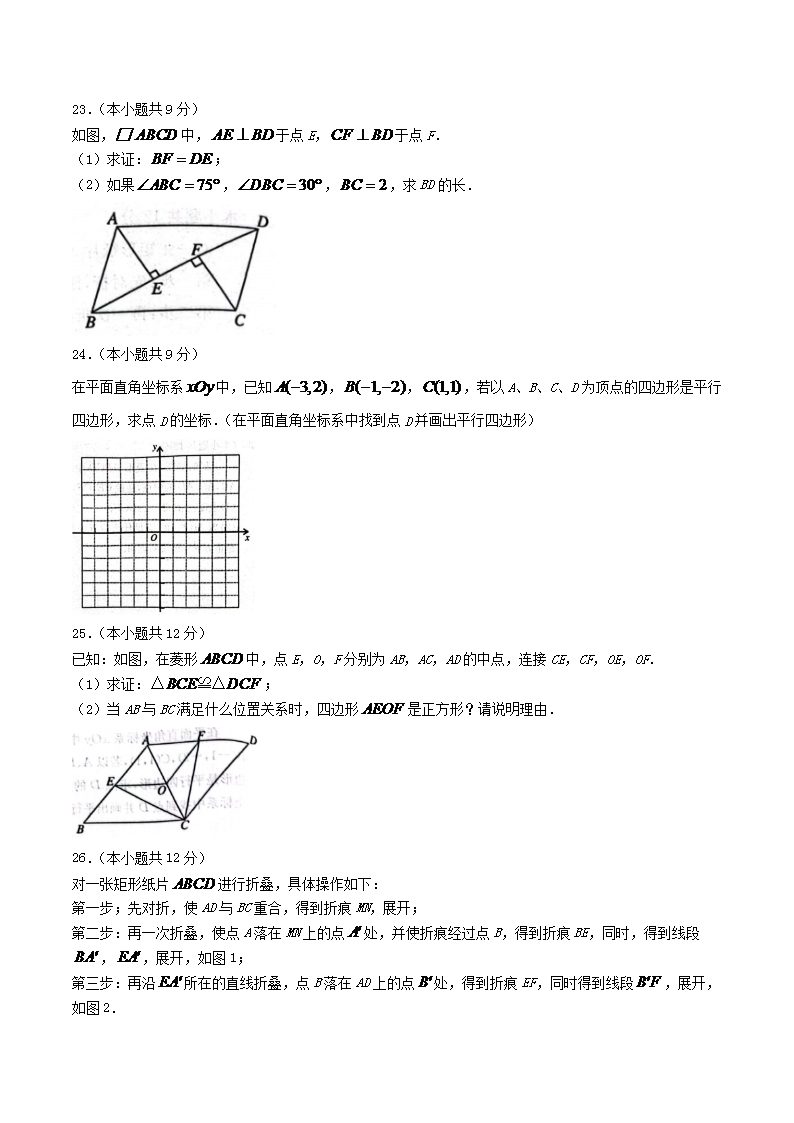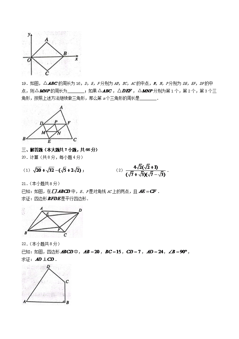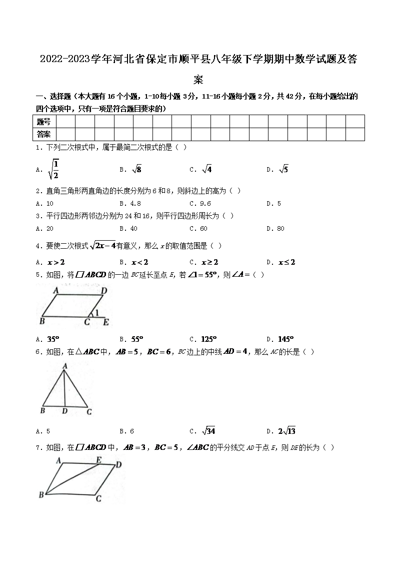 2022-2023学年河北省保定市顺平县八年级下学期期中数学试题及答案(Word版)10-12
