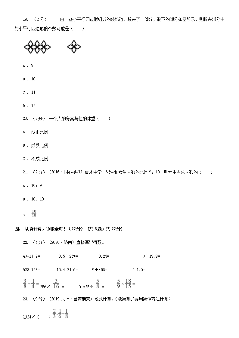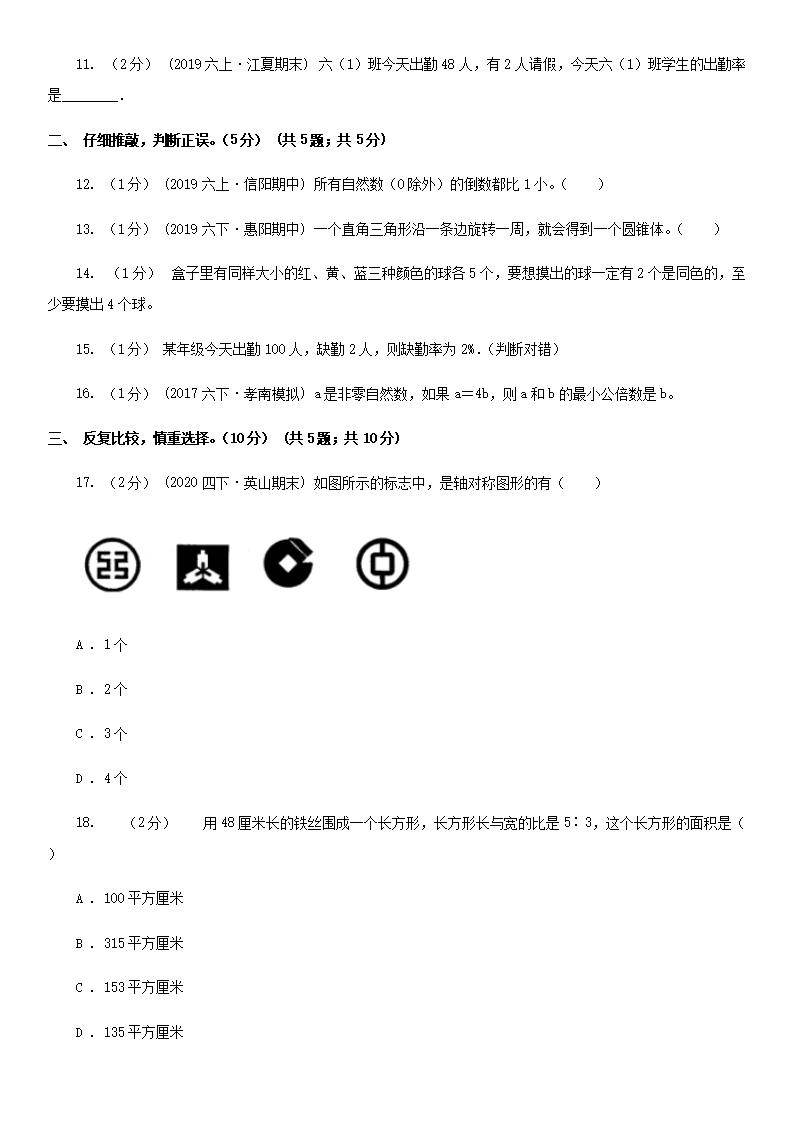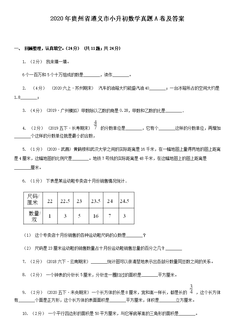 2020年贵州省遵义市小升初数学真题A卷及答案(Word版)08-01