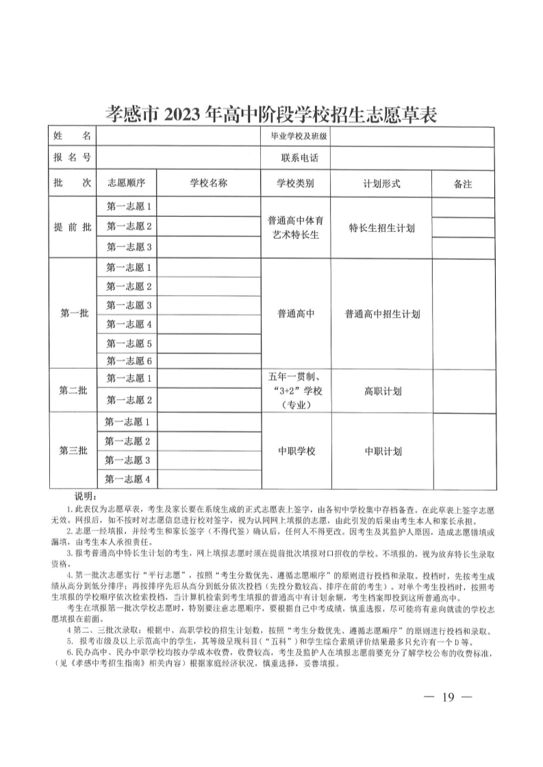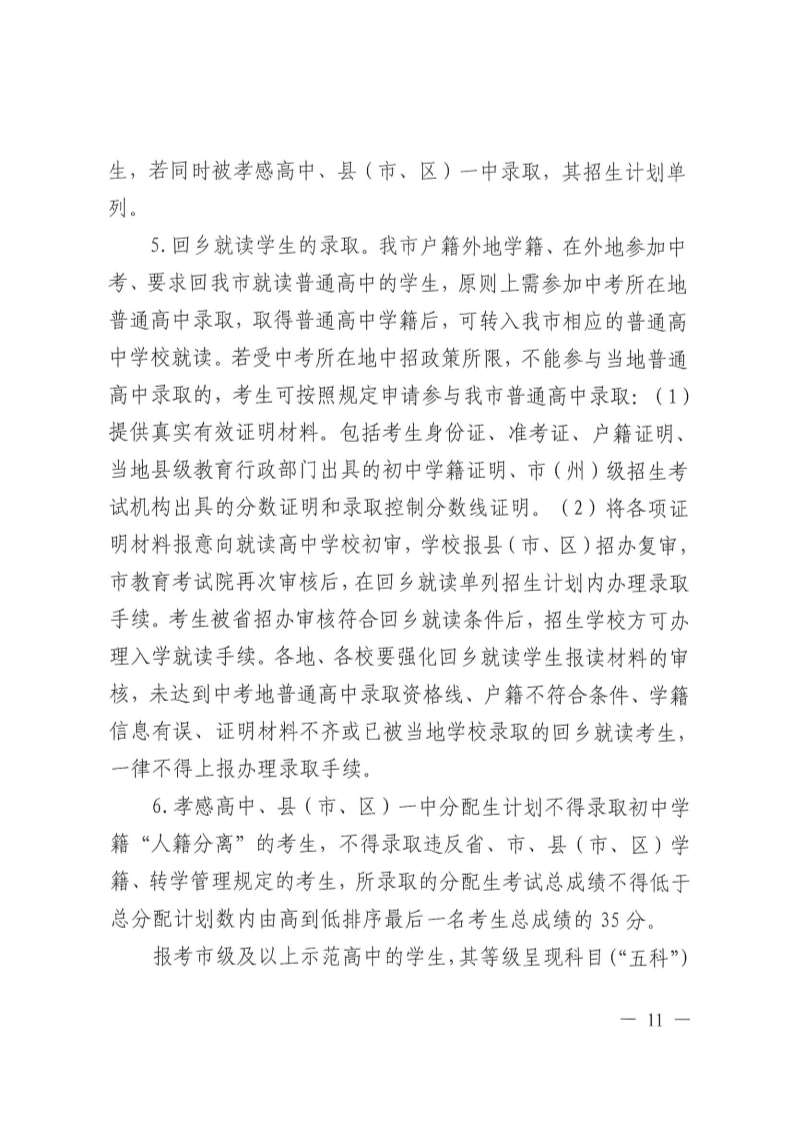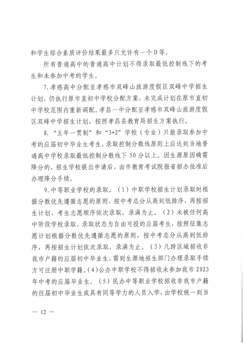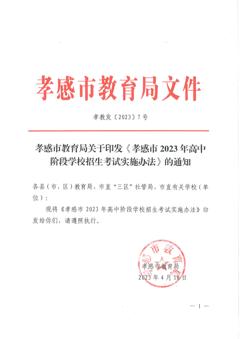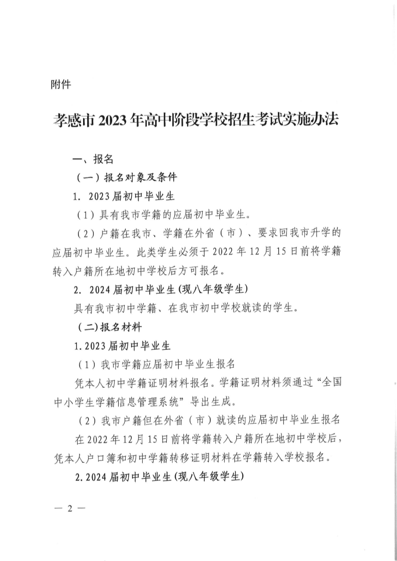 原文标题:孝感市教育局关于印发《孝感市2023年高中阶段学校招生考试实施办法》的通知
