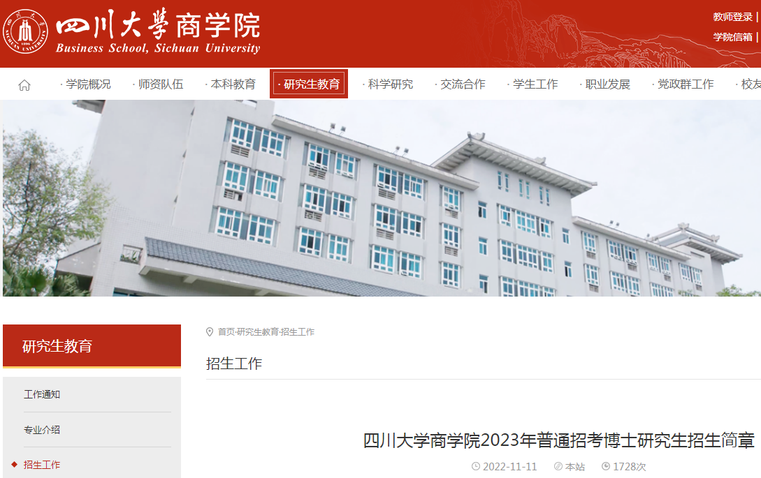 四川大学商学院2023年普通招考博士研究生招生简章11-16