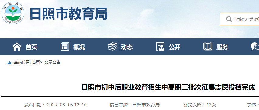 山东日照初中后职业教育招生中高职三批次征集志愿投档完成08-08