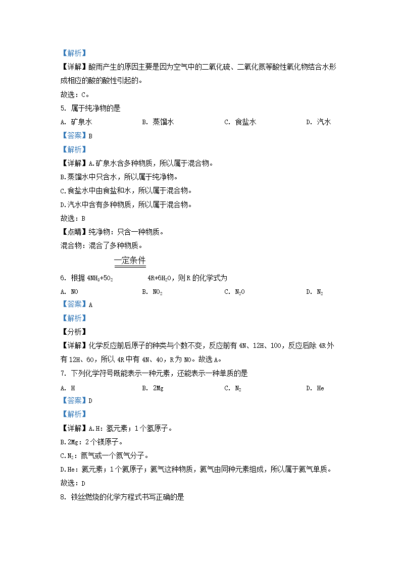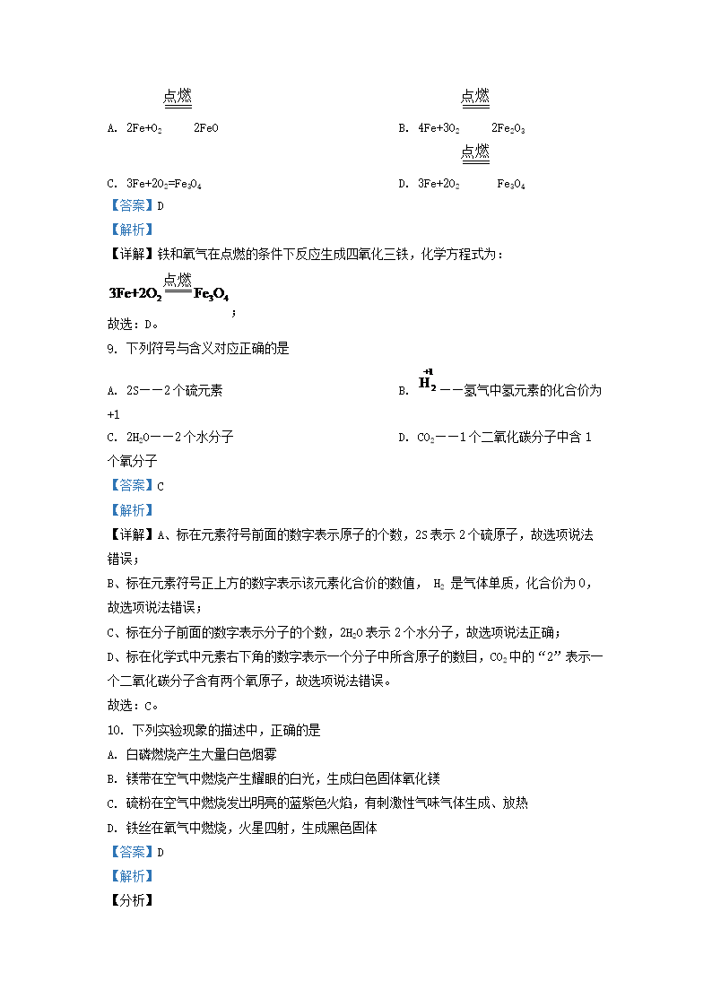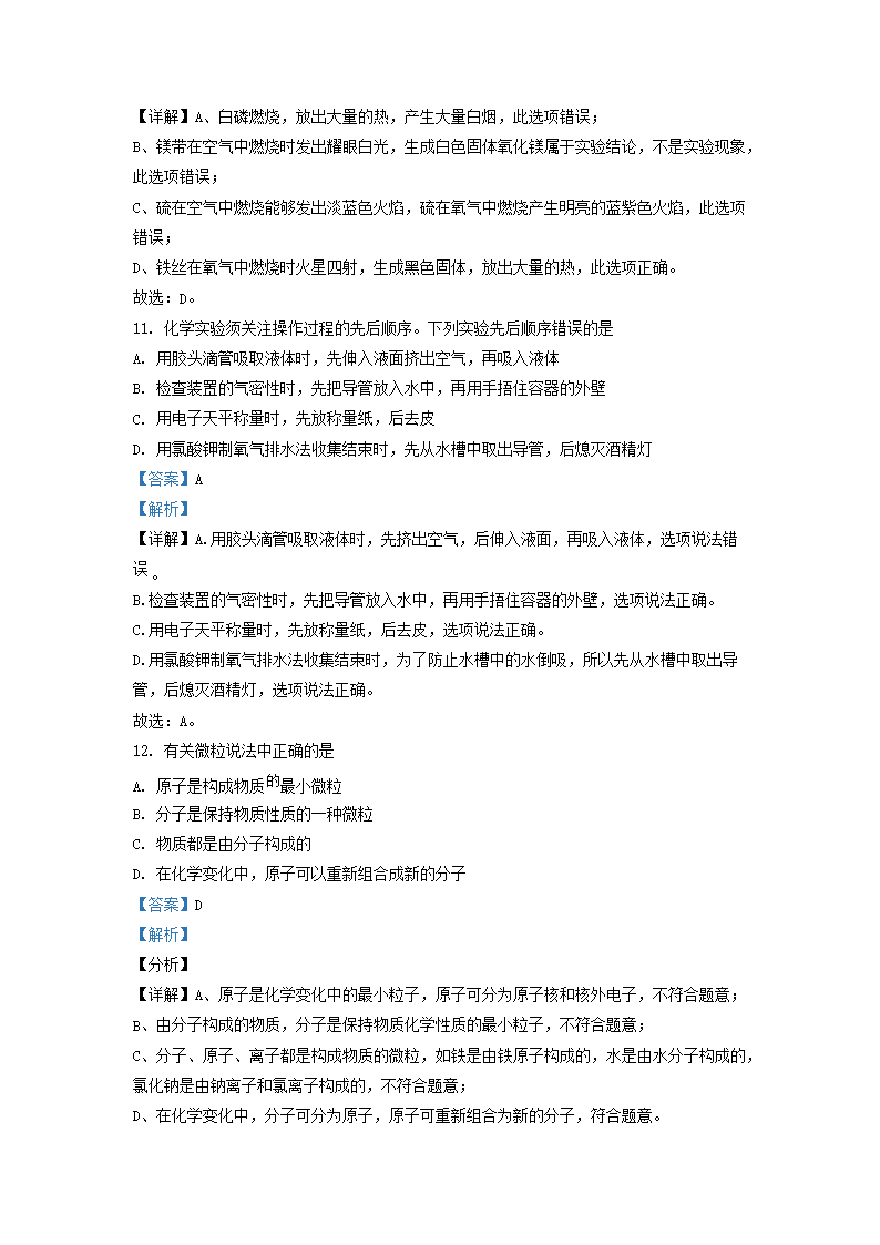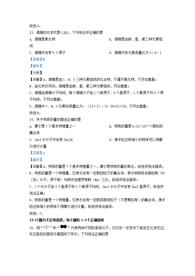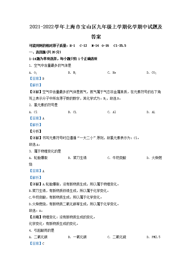 2021-2022学年上海市宝山区九年级上学期化学期中试题及答案(Word版)10-20