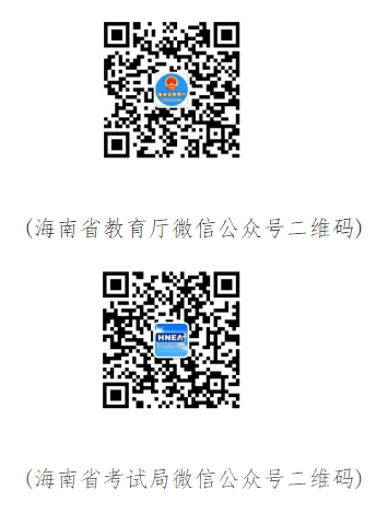 考生可关注海南省教育厅官方微信公众号“海南省教育厅”(微信号:hnsjytwx)或海南省考试局官方微信公众号“海南考试”(微信号:hnkswx),点击“海南高考”菜单查询。扫描下方二维码关注“海南省教育厅”微信公众号或“海南考试”微信公众号。